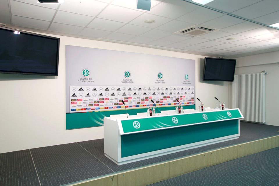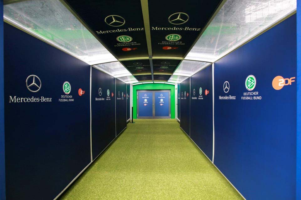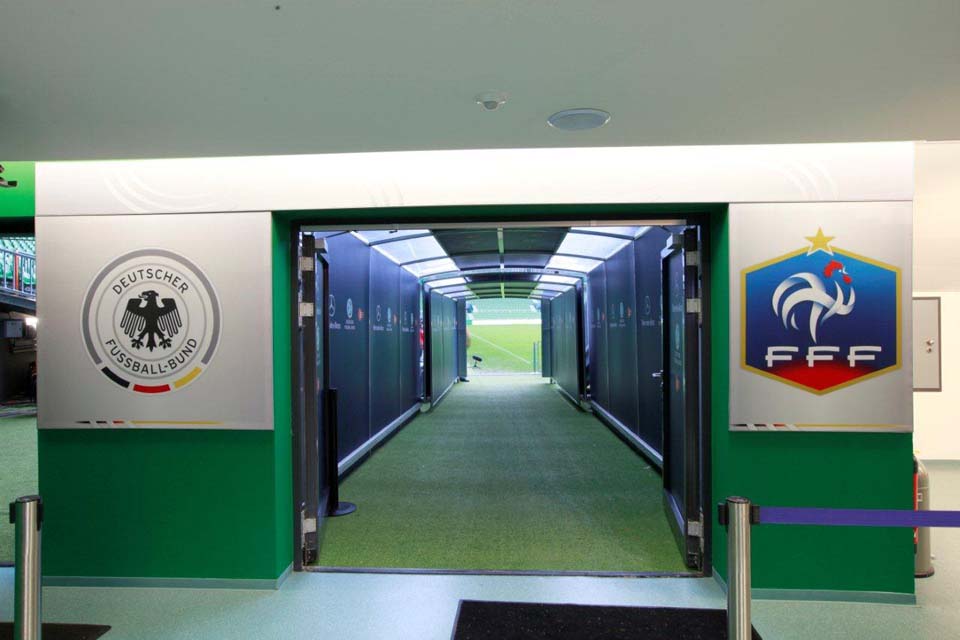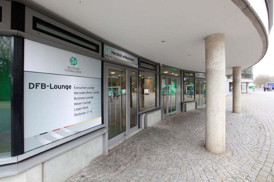 Venue-Dressing, Mixed-Zone-Flächen, Spielertunnel, Pressekonferenz, Wegeleitsystem und vieles mehr - VETO sorgte in gewohnt routinierter Manier für ein perfekt gestyltes "Drumherum" und brandete das Weserstadion im grünen DFB-Design. Das hat nicht nur den grün-weißen Hausherren gefallen.