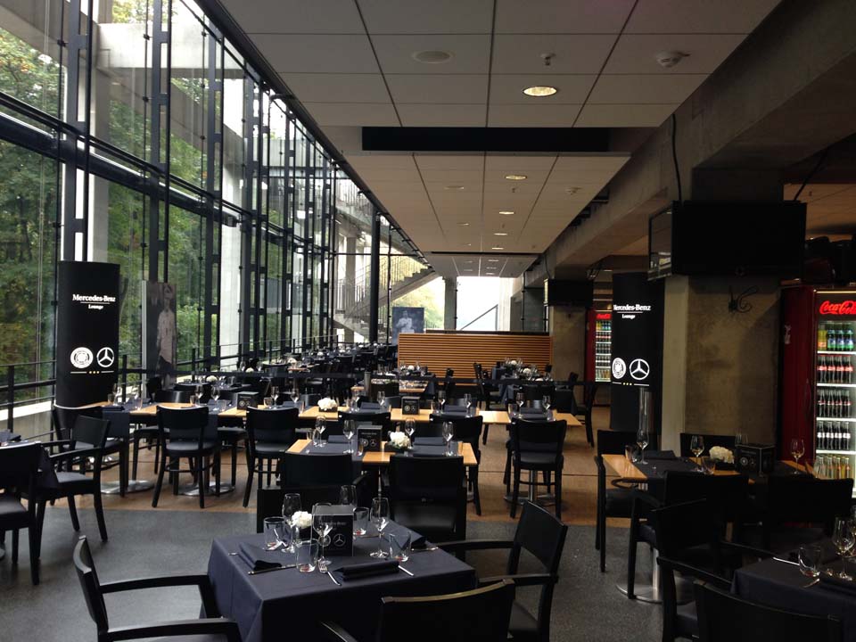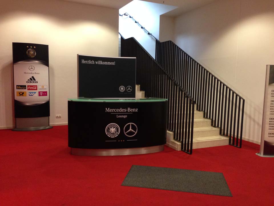 Ob Umlauf, Stadioninnenraum oder die Mercedes-Benz-Lounge im VIP Bereich, der einheitliche Auftritt der Marke wurde für alle Gäste im Stadion und die Zuschauer im TV-Bild umgesetzt.