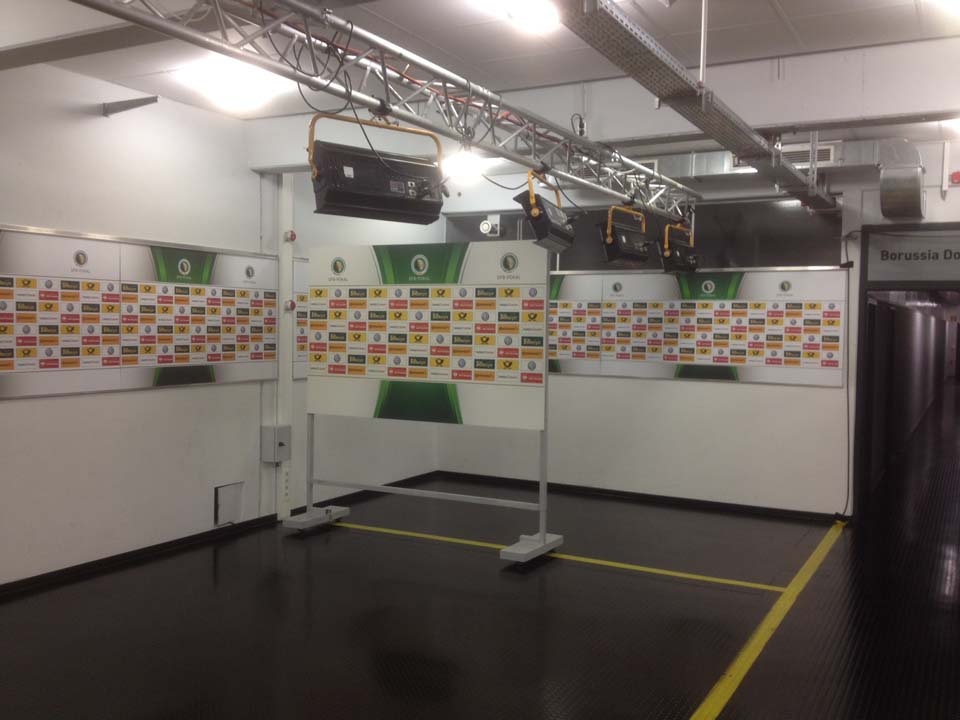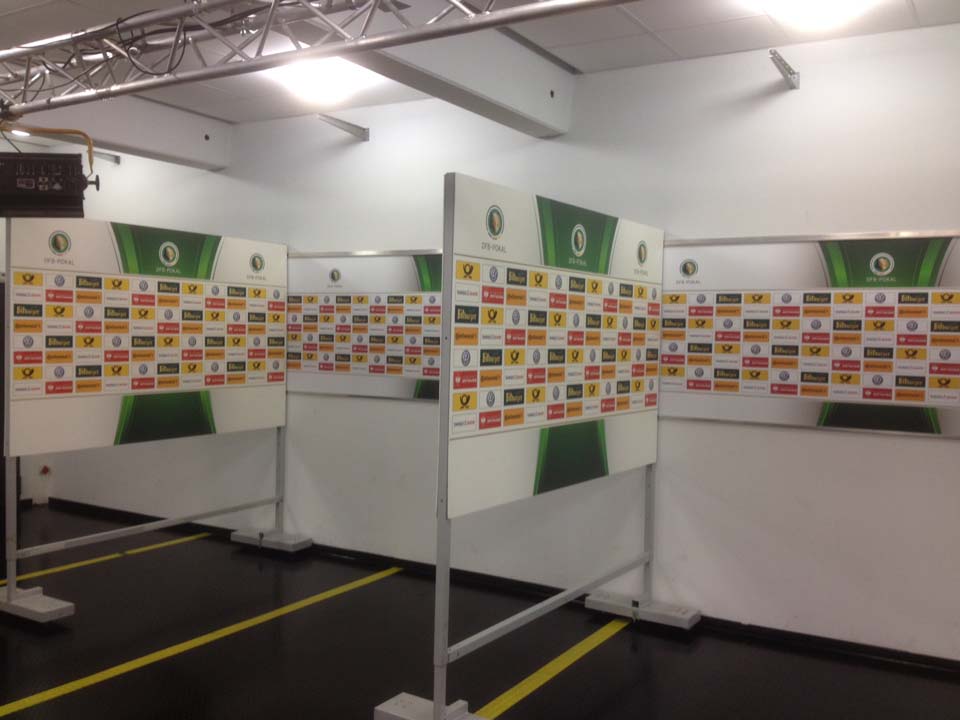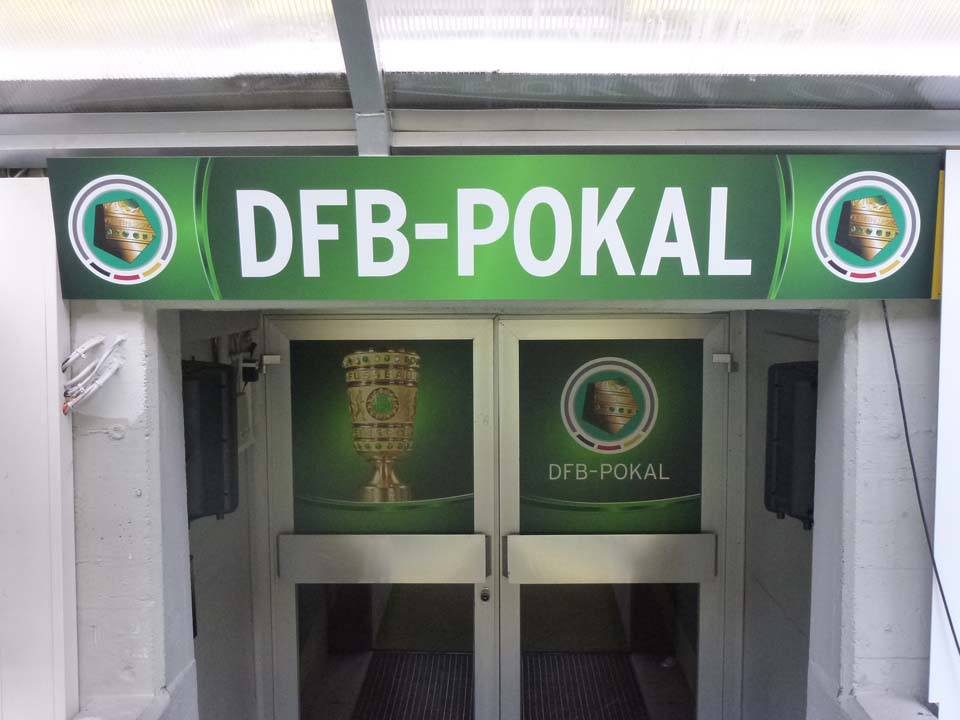 Im Rahmen der Halbfinalspiele war VETO, wie in den vorherigen DFB-Pokalrunden, im Auftrag der Infront Sports & Media AG für das Venue Dressing, das Branding der Trainerbänke sowie der Verkleidung der Mixed Zone- und Spielertunnelbereiche zuständig.