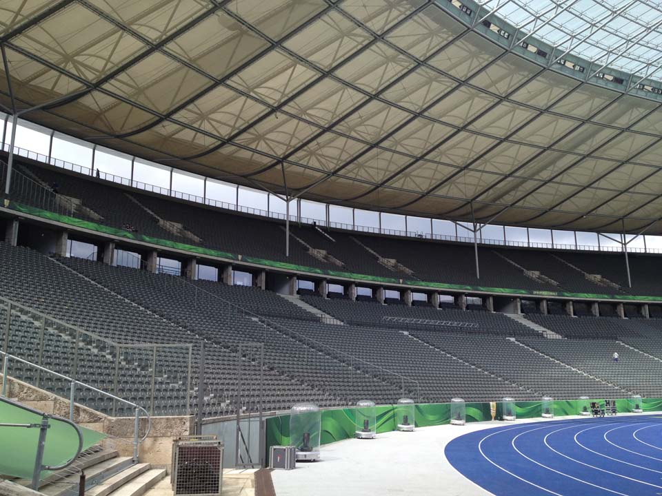 Erstmalig wurde das DFB Pokaldesign exakt auf die Maße des Oberranges sowie der zweiten Reihe des Olympiastadions angepasst, produziert und neu relaunched.