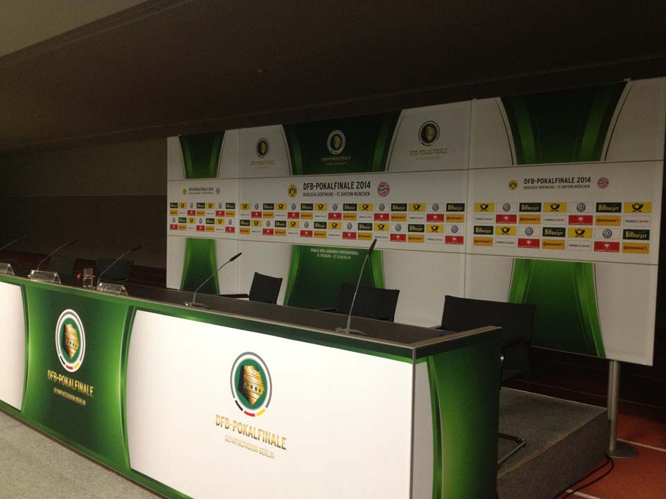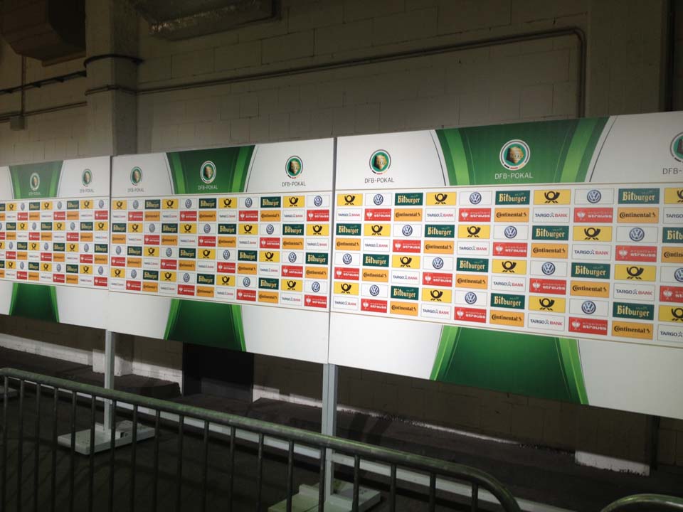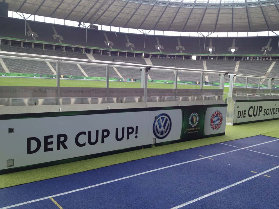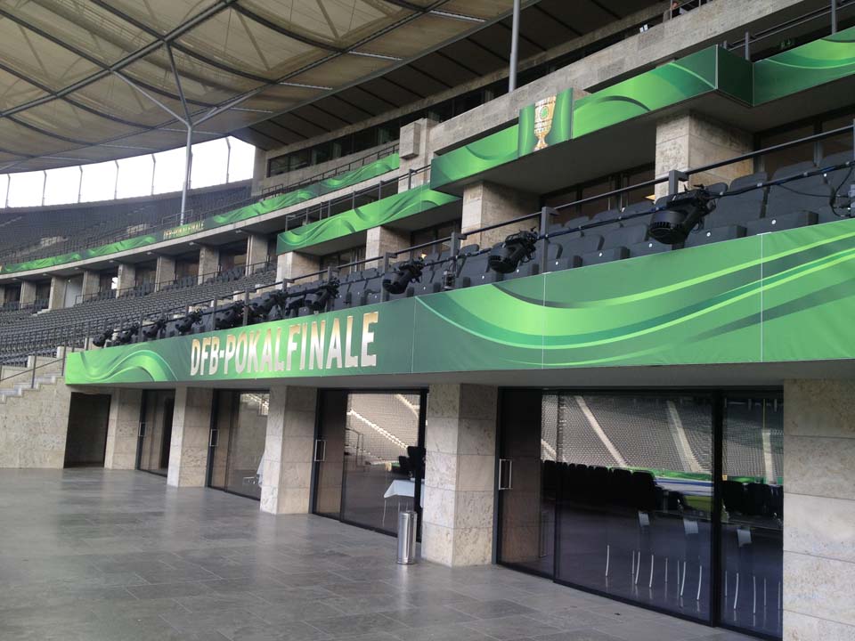 Wie schon bei allen vorhergehenden DFB Pokalspielen, war VETO hier im Auftrag des Vermarkters Infront für das Venue Dressing im Olympiastadion zuständig.