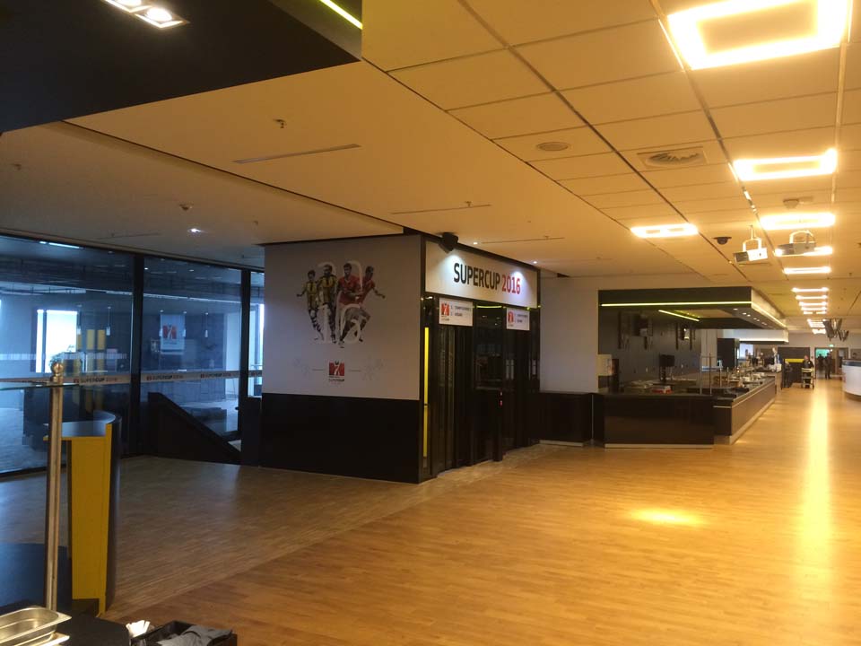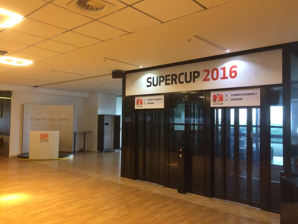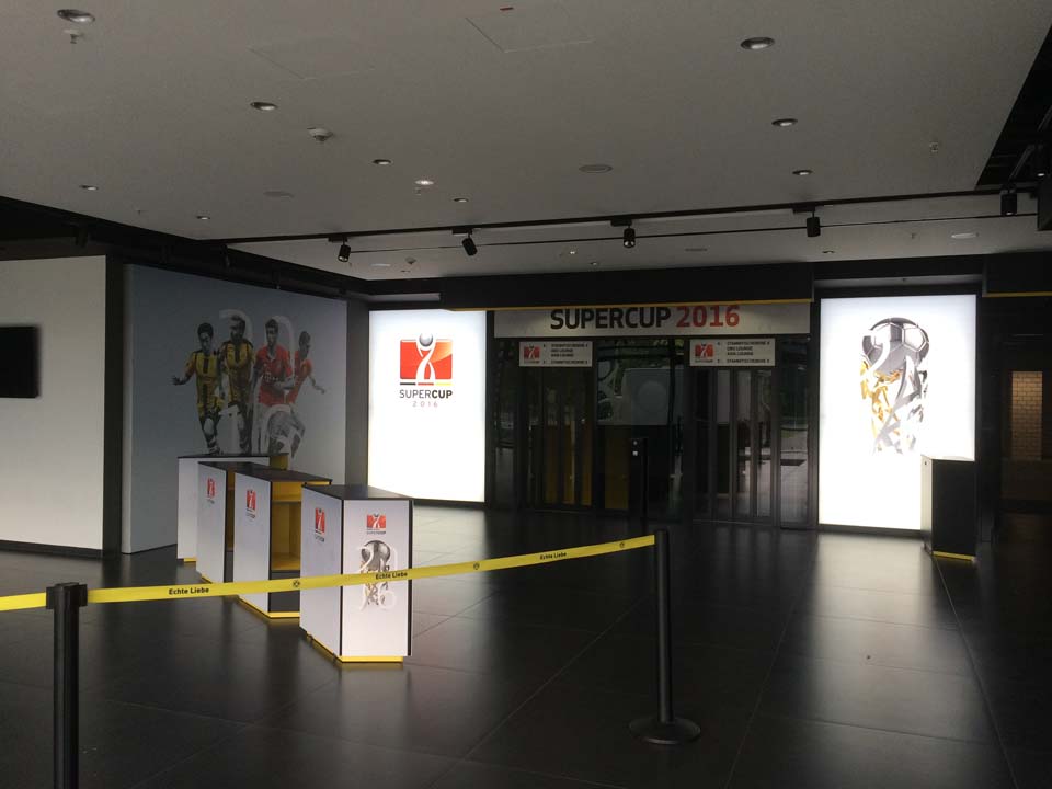 In kürzester Zeit wurde das Stadion mit dem deutschlandweit höchsten Zuschauerfassungsvermögen im einheitlichen SUPERCUP-Design gestaltet.