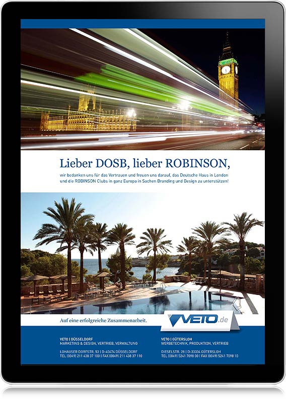 Lieber DOSB, lieber ROBINSON, wir bedanken uns für das Vertrauen und freuen uns darauf, das Deutsche Haus in London und die ROBINSON Clubs in ganz Europa in Sachen Branding und Design zu unterstützen!